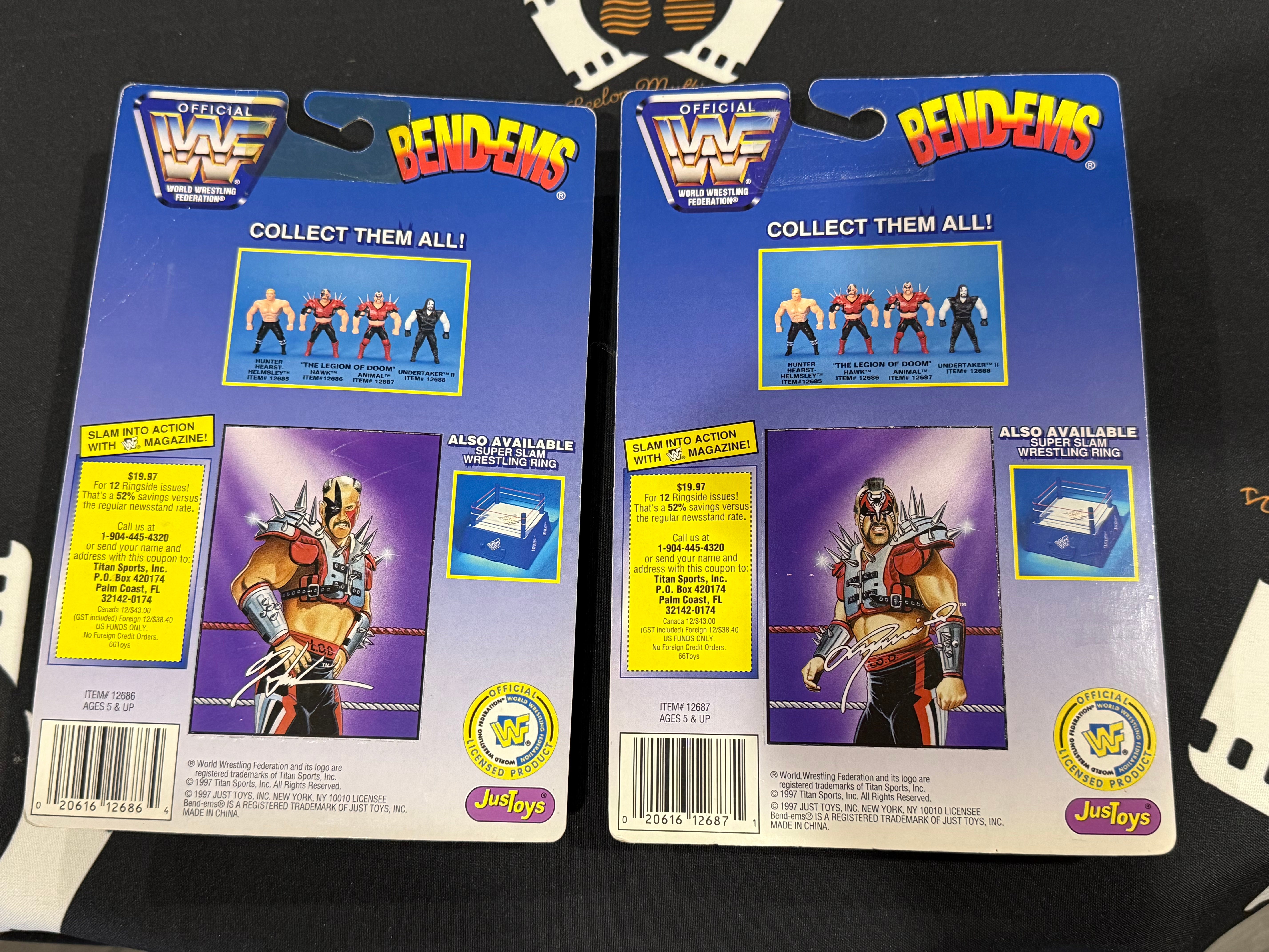 WWF legion of doom LOD bend-ems carded wrestling figure set of 2 hawk animal